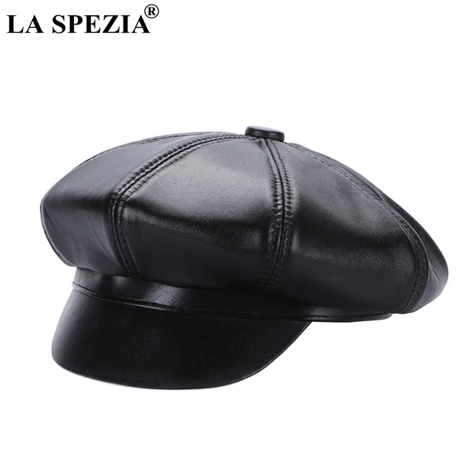 Buy LA SPEZIA Women Sheepskin Octagonal Cap Genuine Leather Black Newsboy Cap Men Italian Design Real Leather Autumn Winter Hat Right Here and Right Now 51.01 %, Because before price is changed at anytime without notice or this item will sold out. who is know?